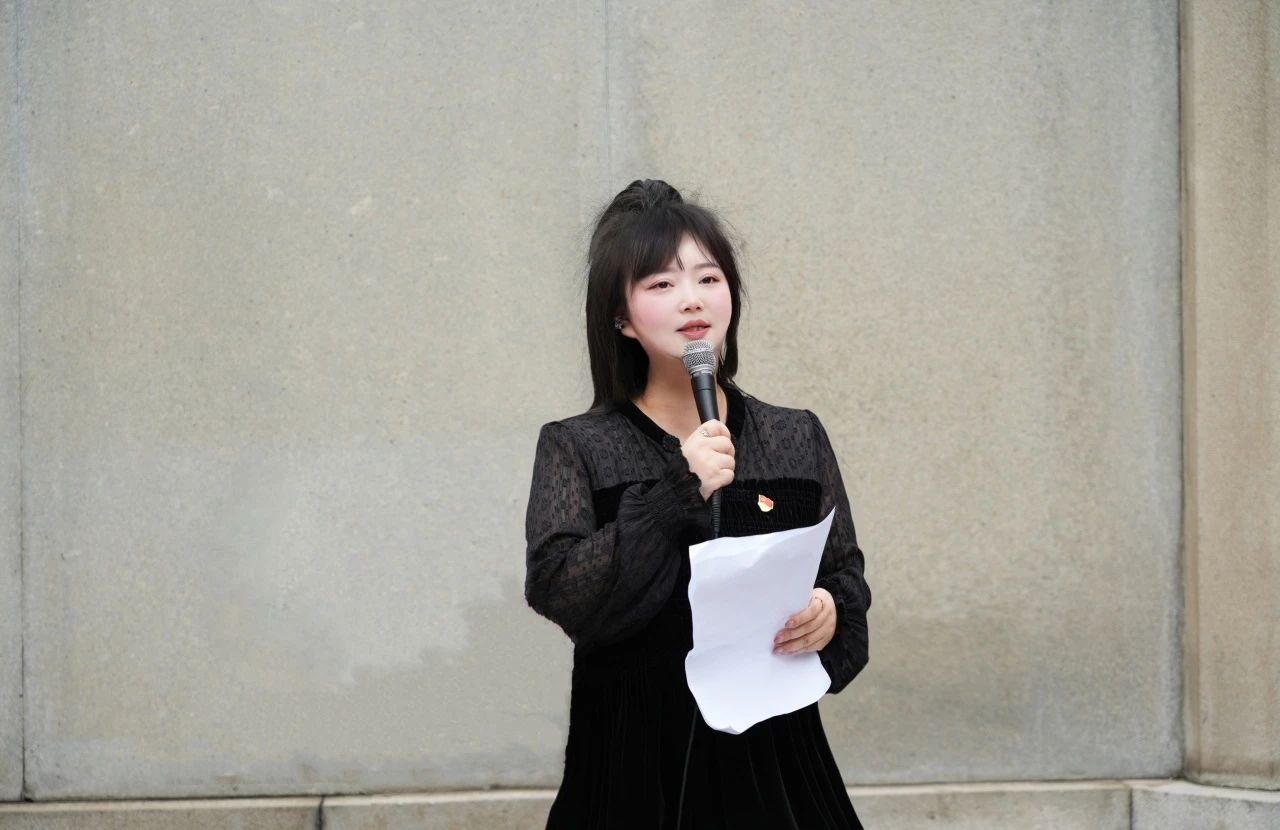 在烈士纪念碑前,学校党委委员、党委宣传部部长刘苗作动员讲话。她强调,英雄烈士用热血和生命铸就的爱国主义精神,是中华民族弥足珍贵的精神瑰宝,更是推动中华民族不断发展进步、走向伟大复兴的强大动力源泉。学校的高质量发展,绝不仅仅体现在学科排名的提升和科研成果的突破上,更重要的是为区域经济社会发展培养出大批具有深厚家国情怀、能够扎根基层、奉献社会的应用型人才。作为高校宣传队伍,肩负着重大的使命与责任,要以实际行动守护信仰,用深刻的思想引领方向,切实回答好“为谁培养人、培养什么人”这一教育的根本问题。