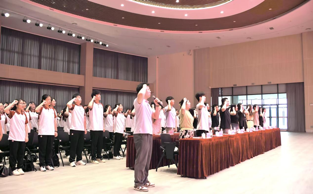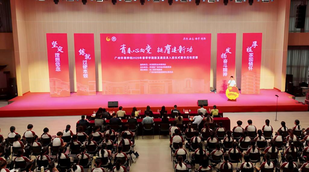 为深入学习宣传贯彻党的二十届三中全会精神,推进学校共青团改革,提升我校团员队伍质量和素质,增强团组织凝聚力,为基层团组织注入活力,为迎接本科教学工作合格评估、二十周年校庆注入青春力量。2025年6月10日下午,在团四会市委的指导下,校团委在肇庆校区二号楼报告厅举办广州华商学院2025年春季学期新发展团员入团仪式暨示范性团课。团四会市委书记崔冰娜、团四会市委副书记林依蓝、黄鸿彬,校院两级团学骨干、各校级组织学生骨干、2025年新发展团员等近500人参加仪式。仪式由校团委何以立老师主持。