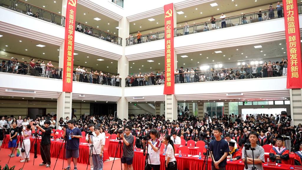 2025年6月21日上午,广州华商学院2025届毕业典礼在广州校区中央图书馆大厅隆重举行。10328名毕业生身着学位服,在师长的殷切期盼中完成人生重要蜕变,带着“厚德、励志、博学、创新”的校训精神,踏上服务社会、报效国家的新征程。广州华商学院校长胡军教授、党委书记陈玉欢,广州华商学院首席科学家陈新滋院士,副校长范忠宝、刘少波、焦方太、吕峻闽、余家军、许娜,华商科教集团副总裁刘文琦,学校顾问王锦秀,校长助理、各二级学院领导、职能部门负责人与师生代表、毕业生家属共赴这场青春盛典、共享2025届毕业生的喜悦,为成长喝彩,为青春加冕。本次典礼以线上+线下的方式同步进行。