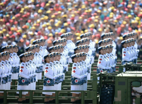 徒步方队陆海空三军仪仗队接受检阅,女兵首亮相。