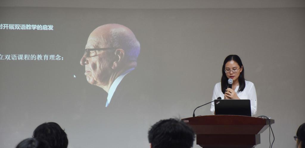 然后,文学院外语系刘玉英老师用双语教学的方式通过有趣的互动游戏,将大家带入澳洲的大学课堂。让老师们一起体会到教学中如何调动课堂气氛,如何让学生积极地参与到教学过程中,激发学生的主动性和学习兴趣。