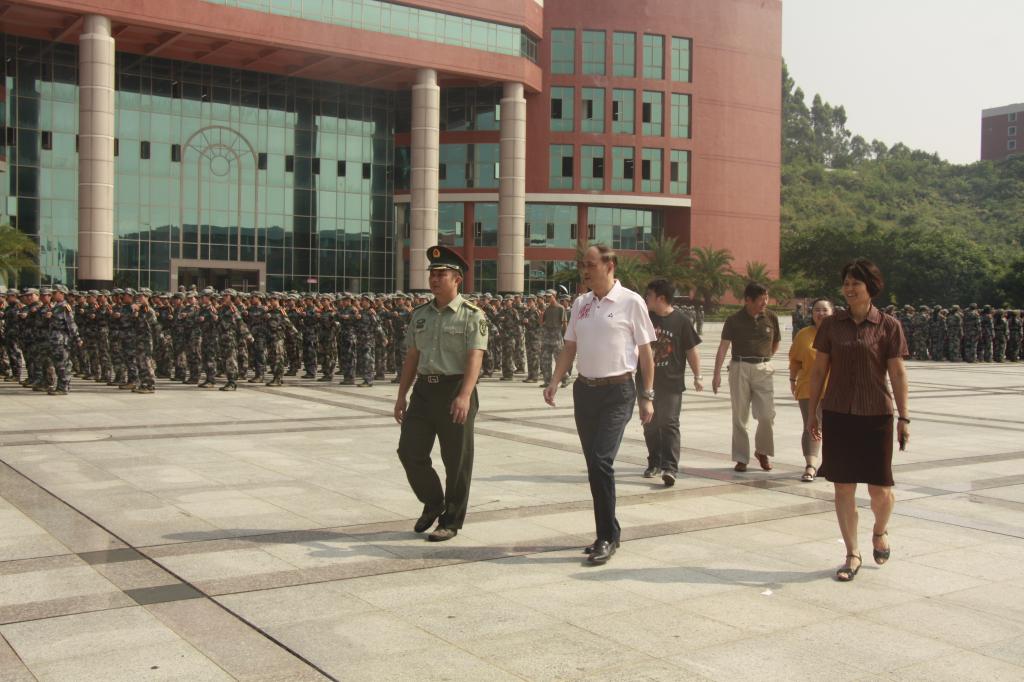 9月23日上午,党委苏宁书记,王锦秀副院长在军训团团长叶计选,军训团副团长、学生处李希恒处长,团委刘苗副书记的陪同下巡视我院2016级新生军训现场,亲切慰问正在紧张训练的承训教官、参训学员及相关工作人员。