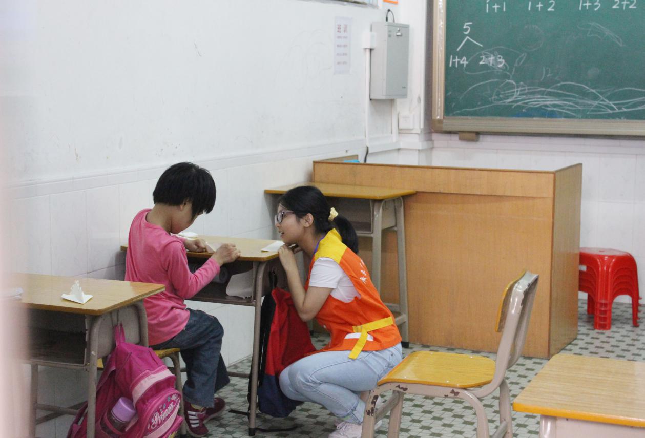在支教过程中,我院志愿者们结合致明小学学生的特殊性,采取形式多样的活动内容,引导有言语障碍、自闭症的小朋友发出愿望,融入大伙的欢乐和笑声中,带领有智慧障碍的小朋友一起朗诵、一起游戏、一起书写,充分发挥了“奉献、友爱、互助、进步”的志愿精神。支教内容主要包括折纸教学、通过活泼有趣的动画片引导小朋友描绘自己心目中的最喜欢的小动物、引导学生学唱儿歌、与学生共同完成拼图等。整个活动过程寓教于乐,现场气氛活跃,志愿者与学生相处融洽。