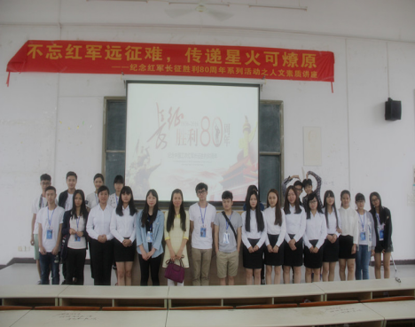 11月8日下午,按照学校党委要求,学生处组织、校园通讯社承办的纪念长征胜利80周年系列活动之人文素质讲座在励志楼B栋407室如期举行,本次讲座的主题是长征精神与近代民族精神的重构。主讲人是来自思政部的闫长远老师,讲座对象为各年级班长。到场的嘉宾有:学生处李希恒处长、学生处熊桂桃副处长、学生处胡小娟老师。本次讲座还吸引了不少同学前来听讲,现场气氛热烈。