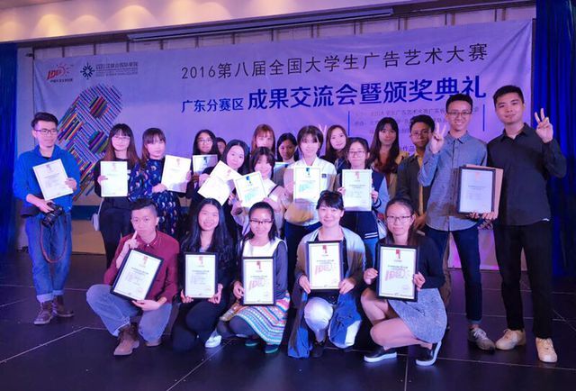 本次活动在珠海UIC北京师范大学-香港浸会大学联合国际学院举行。来自广东省33所院校的70多位老师、300多位同学参与了活动。我校共派出李明、陆春连、李朝霞三位获奖教师和18名获奖同学参加。此次大广赛我校共斩获广东分赛区一等奖3个,二等奖2个,三等奖6个和优秀奖6个,第一次参加国家级大型赛事即取得如此佳绩,可谓出师大捷。其中潘盛同学的作品荣获全国总评审三等奖。