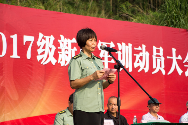 军训团郑宏兴团长在致辞中讲到,军训是培养广大学生增强爱国意识和国防意识的重要途径,同时也为我国国防后备力量做好充分的准备。为我校军训任务取得圆满成功,郑宏兴团长对各位首长教官提出几点严格的要求:一,严格按照学校要求,紧密结合学校的规章制度和学生的身体实际,切实做到劳逸结合,循序渐进。二,文明实训。军训过程中,不仅要把军训技能教给新生们,更重要的是要把部队的优良传统展现给同学们,成为新生们的良师益友。三,谦虚好学,向学校领导学习,向在校的师兄师姐们学习。军训中要多与老师,同学加强交流,积极配合学院领导以及辅导员的工作。同时,郑宏兴团长也对接受军训的新生提出了两点要求:一,敢于吃苦敢于锻炼,在军训中要勇于激发自己的斗志,磨砺自己的意志。二,希望新生们服从命令,听从指挥。