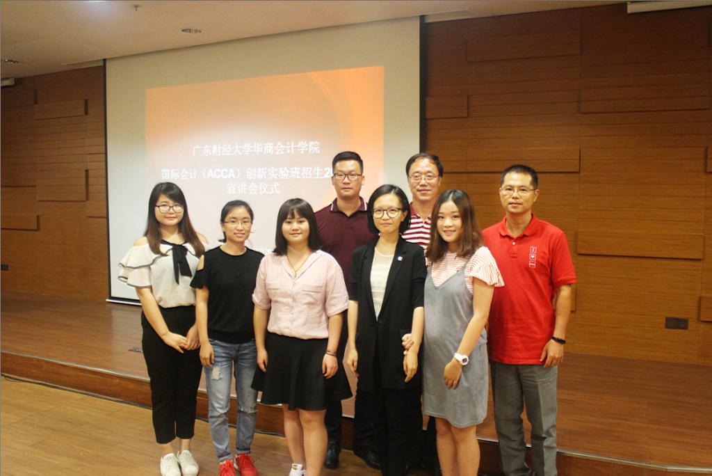 ,广东财经大学华商学院2017级国际会计(ACCA)创新实验班招生宣讲会分别于下午14:30(会计专业专场)及晚上19:00(非会计专业专场)在图书馆报告厅举行。华商学院副院长、会计学院院长陈美华教授、ACCA广州代表处徐翠萍主任、ACCA资深会员董伟清老师、会计学院副院长巴雅尔副教授、许娜老师以及ACCA项目负责人等嘉宾莅临宣讲会。