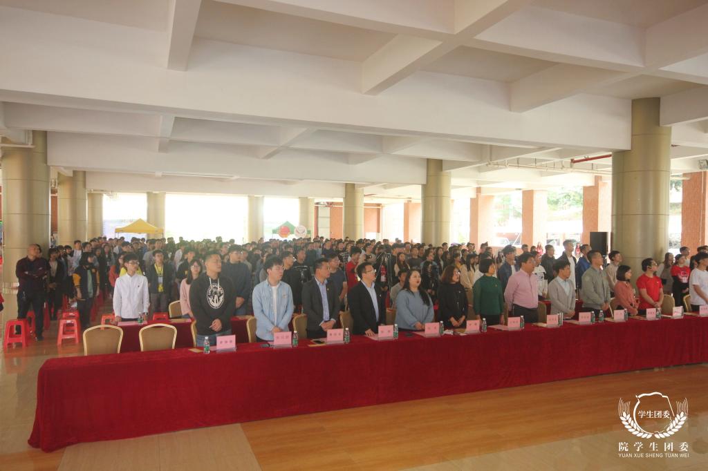 4月17日15:00,广东财经大学华商学院第七届科技学术节开幕式在启智楼一楼隆重举行。参加开幕式的嘉宾有学院党委副书记、学院副院长王锦秀,党委办公室副主任吕书勉,学生处副处长黄国富,团委书记许娜,团委副书记刘苗、陈刚,各二级院(系)团总支书记、以及参加学生代表,共500余人参加本次开幕式。