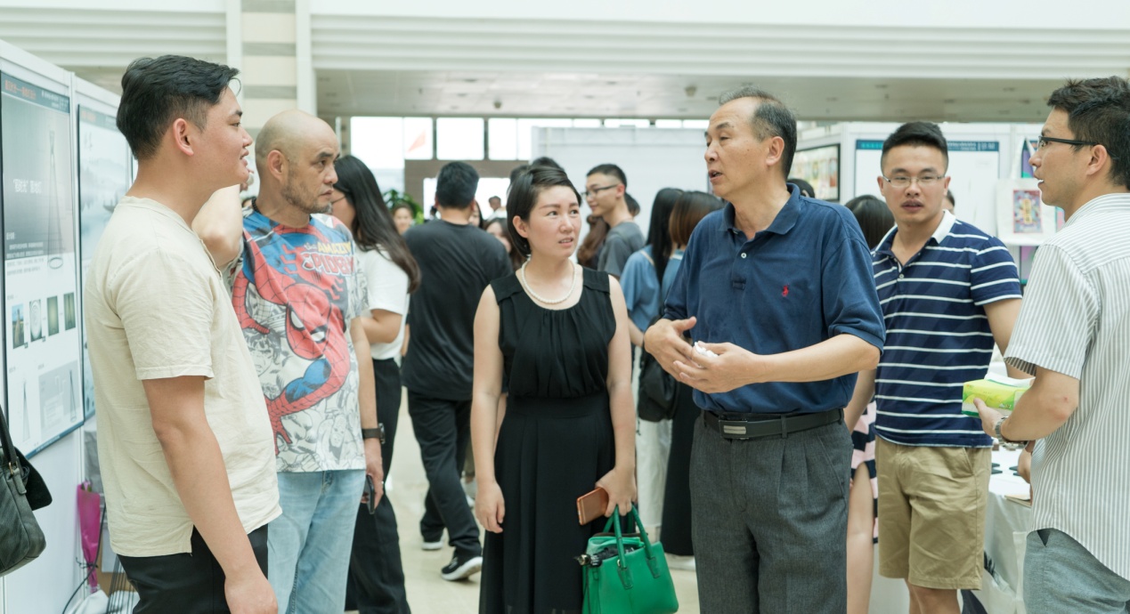 院系领导及老师谈论毕业生作品