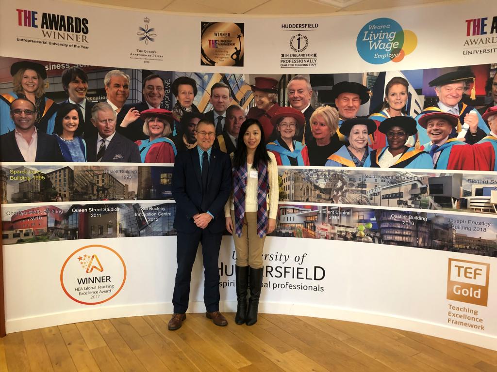 ▲我校副校长廖伊曼女士与哈德斯菲尔德大学主管国际合作副校长David Taylor合照