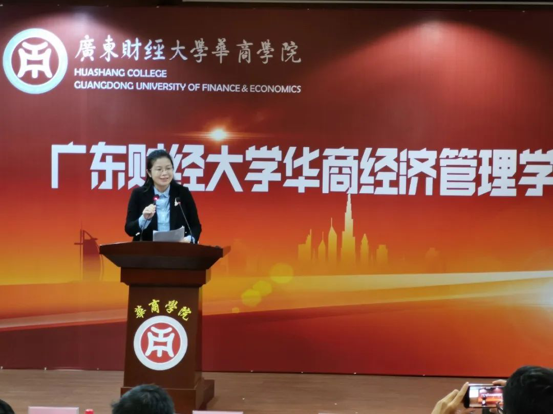 广东财经大学华商学院王锦秀副校长在致辞中表示了对华商经济管理学院校友会成立的热烈祝贺。树人兴业十四载,砥砺奋进建新功,王校长提到,经过十五年的发展,学校的社会影响力不断扩大。学校今日的辉煌都离不开广大校友多年的热心关注和鼎立支持。她希望各位校友能继续支持学校发展,共同进步,为母校增添光彩,为母校的建设和发展蓄积力量。王校长表示,经济管理学院的各项工作一直对学校建设发展起到重要作用。经济管理学院校友会成立,是学校发展的要事,是董事长提出“创百年名校,育华夏英才”理念的重要体现。希望借校友会这一桥梁,广大校友与学校的联系能够更加紧密。