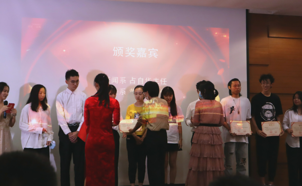 本次大赛共评选出网络人气奖作品10部,优秀奖作品18部,三等奖作品6部,二等奖作品3部,一等奖作品1部,莅临本次颁奖典礼的校级领导、传播与传媒学院领导以及各系主任为获奖学生及团队代表颁发荣誉证书并合影留念,各奖项获得者代表发表获奖感言。文艺表演与颁奖环节交替举行,传院学生奉献了一场精彩绝伦的视觉盛宴。同时,典礼现场展播了一、二等奖作品,创作者对作品进行了细致解读。现场观礼同学与获奖者进行了热烈互动,他们针对作品的选题、拍摄技巧、作品背后的故事等提出了很多问题,获奖同学给予了充分解答。最后,在赵安琪等老师领唱下,随着一曲《海阔天空》,全场观众高声合唱,颁奖典礼圆满落下帷幕。
