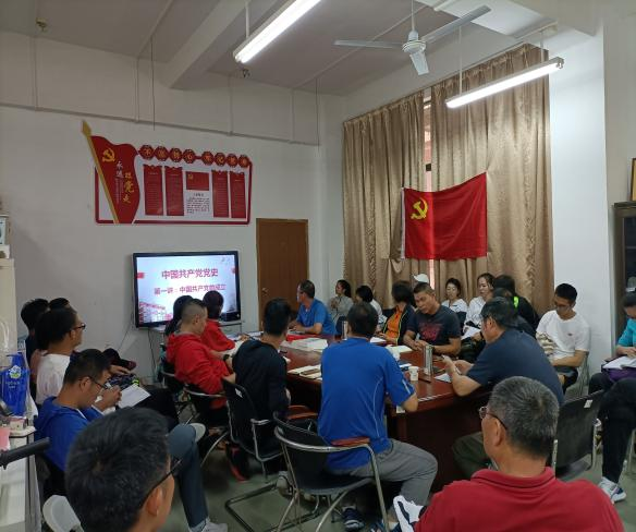 会议第一议题,开展全体党员党史学习教育活动,组织委员钱斌同志带领支部全体党员和教师学习“党史之中国共产党的成立”,钱斌同志在会上带领同志们一起回顾了党成立之初的事迹。随后,观看《开国大典》纪录片,所有老师都被建国初的画面所深深触动,纷纷表示国家的发展、强大离不开中国共产党的正确领导。