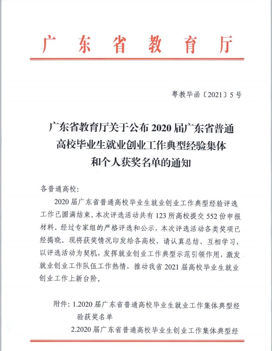 近日,广东省教育厅发布《广东省教育厅关于公布2020届广东省普通高校毕业生就业创业工作典型经验集体和个人获奖名单的通知》(粤教毕函〔2021〕5号),广州华商学院校长助理、创新创业学院常务副院长余家军博士荣获创业工作个人典型经验奖。