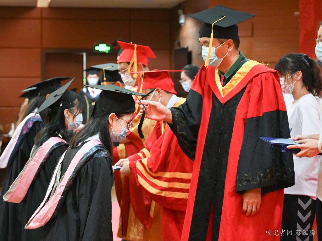 大会最后,执行校长郭银华教授宣读《广州华商学院关于2021年6月普通高等教育本科毕业生学士学位授予的决定》。由陈新滋校长,郭银华执行校长,副校长王列耀、张捷、陈美华共同为2021届毕业生代表授予学位。