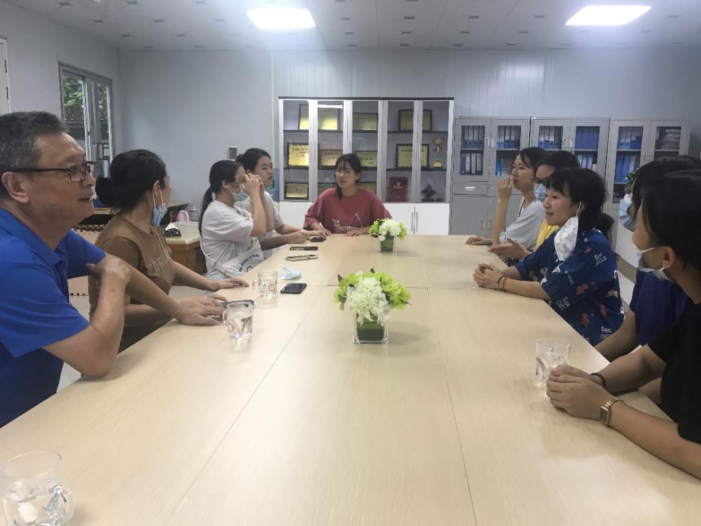 当天,同学们在幼儿园教学活动结束,整理好教室教具和做好卫生工作后,在幼儿园办公室向谭院长汇报了教育实习的工作情况。同学们经过近一个月的教育实习,深刻体会到了教书育人的重大使命感,听党话、为党育人、为祖国培养社会主义接班人。在教育实习过程中认识到理论知识联系实际教学的重要性,受益匪浅;也遇到了学校课堂上意想不到的一些情况,同学们纷纷向谭院长请教。谭院长在教育事业上已深耕三十多年,面对同学们提出的疑问,一一分析并给出建议。
