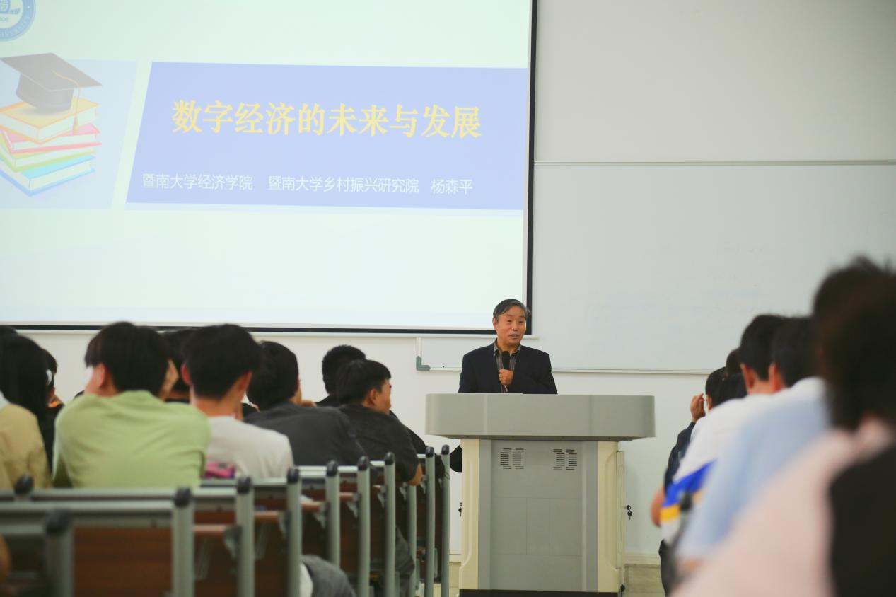 为营造学术氛围,开拓华商学院四会新生的知识,管理学院于2021年10月18日下午16时,在广州华商学院四会校区举办主题为“数字经济的未来与发展”的学术讲座,特邀暨南大学经济学院教授、博士生导师杨森平教授主讲,讲座由管理学院院长李招忠教授主持,管理学院教师代表和四会校区学生以及其他学院学生出席本次讲座。
