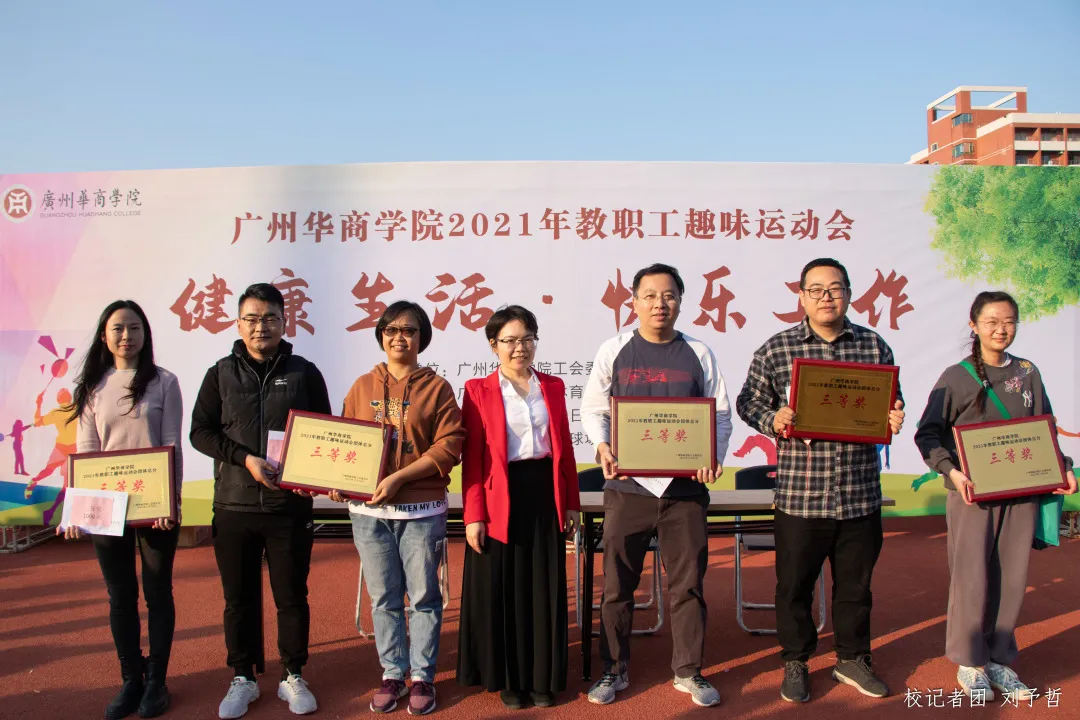 经过激烈的角逐,会计学院代表队以其完美的团队配合和积极的拼搏精神,拔得头筹。行政二队、外国语学院荣获二等奖;行政一队、文学院、管理学院、教师教育学院、金融学院及数据科学学院分别获得三等奖;经济贸易学院、传播与传媒学院、创意与设计学院及马克思主义学院获优秀奖;体育教学部获优秀组织奖。王锦秀副校长、黄小兰主席以及顾伟农主任作为颁奖嘉宾,为获奖队伍颁奖,并亲切慰问了参赛教职工。