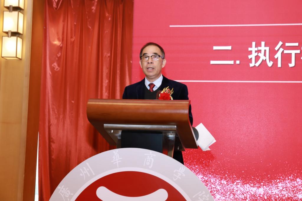 广州校友会会长马列发言。他讲述成立广州校友会的心路历程,表示将继承和发扬华商精神,建设互助友爱、科学发展的共享平台,增进校友间联谊,服务广大校友,愿尽最大努力,促进母校和校友共同发展。并代表广州校友,向母校赠送“道阻且长,行则将则;行而不辍,未来可期”书法牌匾。郭银华执行校长代表学校向广州华商学院校友会广州分会授予分会牌匾。