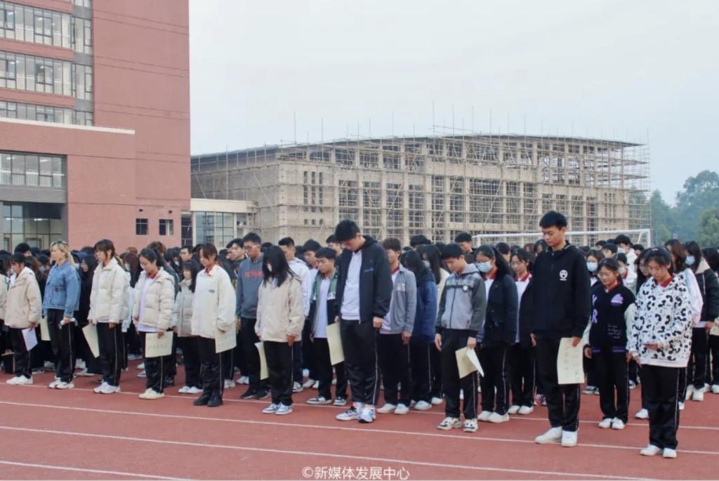 为深入开展爱国主义教育,弘扬民族精神,倡导和平友好理念,营造牢记历史、不忘过去,珍爱和平、开创未来的氛围,培养华商学子勿忘历史、牢记使命的爱国素养,学校团委于2021年12月13日7:30分别在增城校区中央图书馆以及四会校区操场同步举行国家公祭日哀悼仪式。国旗护卫队的旗手们迈着坚定的步伐,高举着鲜艳的五星红旗,彰显着新时代青年的英气。伴随着《义勇军进行曲》以及全体师生们的注视下,五星红旗冉冉升起,升至杆顶迎风飘扬,随后在全体师生的默哀中,缓缓下降三分之一。