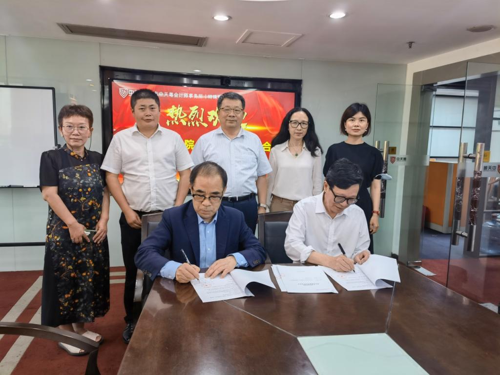 交流会结束后,郭银华执行校长与郭少元所长共同签署了广东中天粤会计师事务所(特殊普通合伙)、广东中天粤税务师事务所有限公司、广州市中和企业管理咨询有限公司、中天粤财审大数据技术(广州)有限公司四份校外实践教学基地合作协议书,并授予“广州华商学院实践教学基地”牌匾。