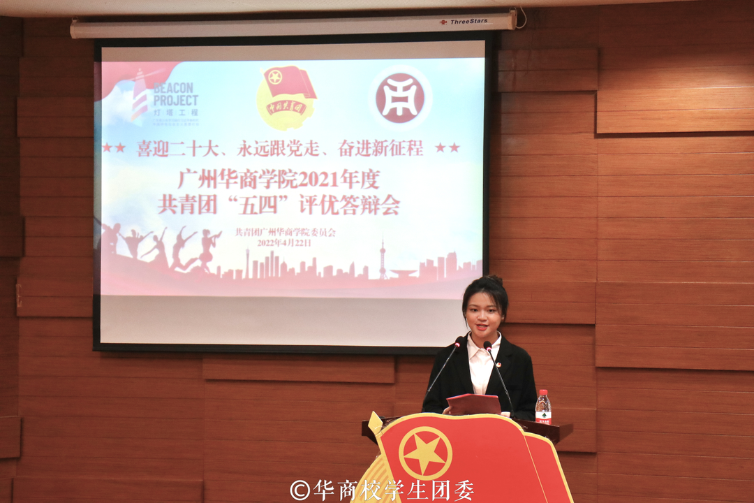 为树立典型、表彰先进,集中展现在习近平新时代中国特色社会主义思想指引下华商青年昂扬向上、奋发有为的精神风貌,引领和激励华商学子以实现中华民族伟大复兴为己任,增强志气、骨气、底气,以实际行动和优异成绩迎接党的二十大胜利召和庆祝中国共产主义青年团成立100周年,校团委于今年4月启动广州华商学院2021年度共青团“五四”评优评选工作。4月22日,广州华商学院2021年度共青团“五四”评优答辩会分别在图书馆报告厅、教师发展中心、行政楼502及厚德楼B407顺利进行。