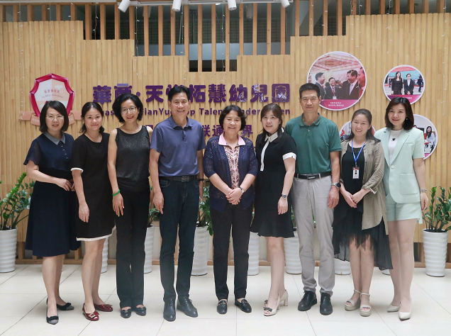 5月20日,广州华商学院副校长支戈壁率领教师教育学院院长王金道、副院长张博、党总支副书记彭博娜前往华商天悦拓慧幼儿园走访交流,与华商拓慧幼教集团常务副总经理黄楚安女士、华商拓慧幼教集团总园长兼华商天悦拓慧幼儿园园长、华商外语实验幼儿园园长杨秀娜女士华商拓慧幼教集团行政人事总监陈黎女士、华商教育集团产业学院院长张隽女士、华商天悦拓慧幼儿园园长助理何丽丁女士、华商天悦拓慧幼儿园保教主任邓淑明女士会面。此次交流活动得到华商教育集团领导的大力支持。在杨秀娜园长的陪同下,我校领导对幼儿园整体进行了全方位参观,之后开展了深入交流。