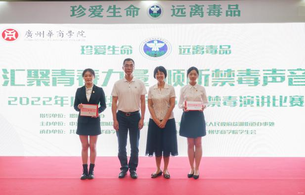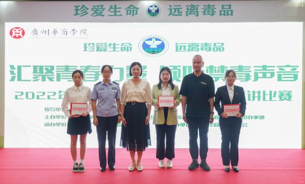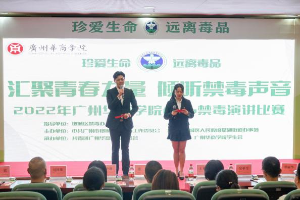 为营造浓厚禁毒氛围,筑牢全校师生禁毒意识,全面掀起开展禁毒宣传教育月活动高潮,6月26日上午,广州华商学院以第35个国际禁毒日为契机,联合荔湖街举行以“汇聚青春力量,倾听禁毒声音”为主题的禁毒演讲比赛。荔湖街党工委书记潘国,广州华商学院党委副书记王锦秀,荔湖街道办事处主任吴碧珊、荔湖街党工委副书记刘国雄,增城区禁毒办常务副主任、广州市公安局增城区分局副分局长吴革生,增城区禁毒办专职副主任蔡丽华、增城区公安分局禁毒大队副大队长邓丽滨、雁塔派出所副所长王川,校长助理许娜部长、党委办公室主任吕书勉、党委宣传部部长、校团委书记刘苗、校团委副书记陈刚等出席本次活动。