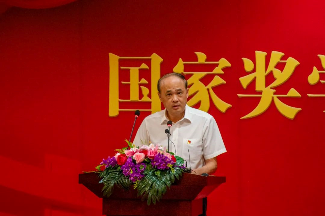 党委书记苏宁宣读表彰决定。苏宁书记宣读了《广州华商学院关于表彰21名学生荣获2020-2021学年度国家奖学金的决定》《广州华商学院关于表彰570名学生荣获国家励志奖学金的决定》和《广州华商学院关于表彰2020-2021学年先进班集体、优秀学生和优秀学生干部的决定》等决定。苏宁书记对以上获奖的个人和集体表示祝贺,鼓励同学们向受表彰的同学和班集体学习,争做一名德智体美劳全面发展的优秀大学生,希望受表彰的同学和班集体再接再厉,发挥模范作用。
