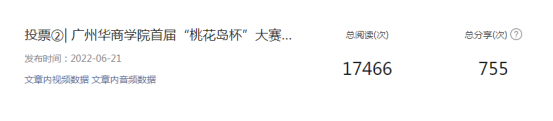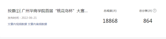 本次大赛由我校与多家单位联合举办,赛事盛大。大赛启动以来,校内累计发布推文17篇次,阅读总量高达41649人次,总分享次数达1792人次,其中单篇推文阅读量高达18868人次,单篇推文分享次数达864人次,形成了较好的宣传效果。本次赛事历时一个月,历经初赛、决赛、选拔,评委阵容强大,囊括多个领域的专家;评选过程采用专家评审+网络选评方式进行,赛程公平公正公开,大赛组委会为呈现一场精彩赛事而不遗余力。
