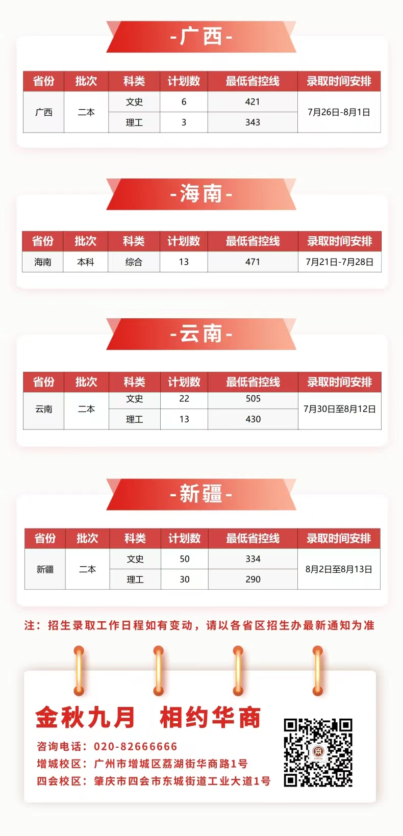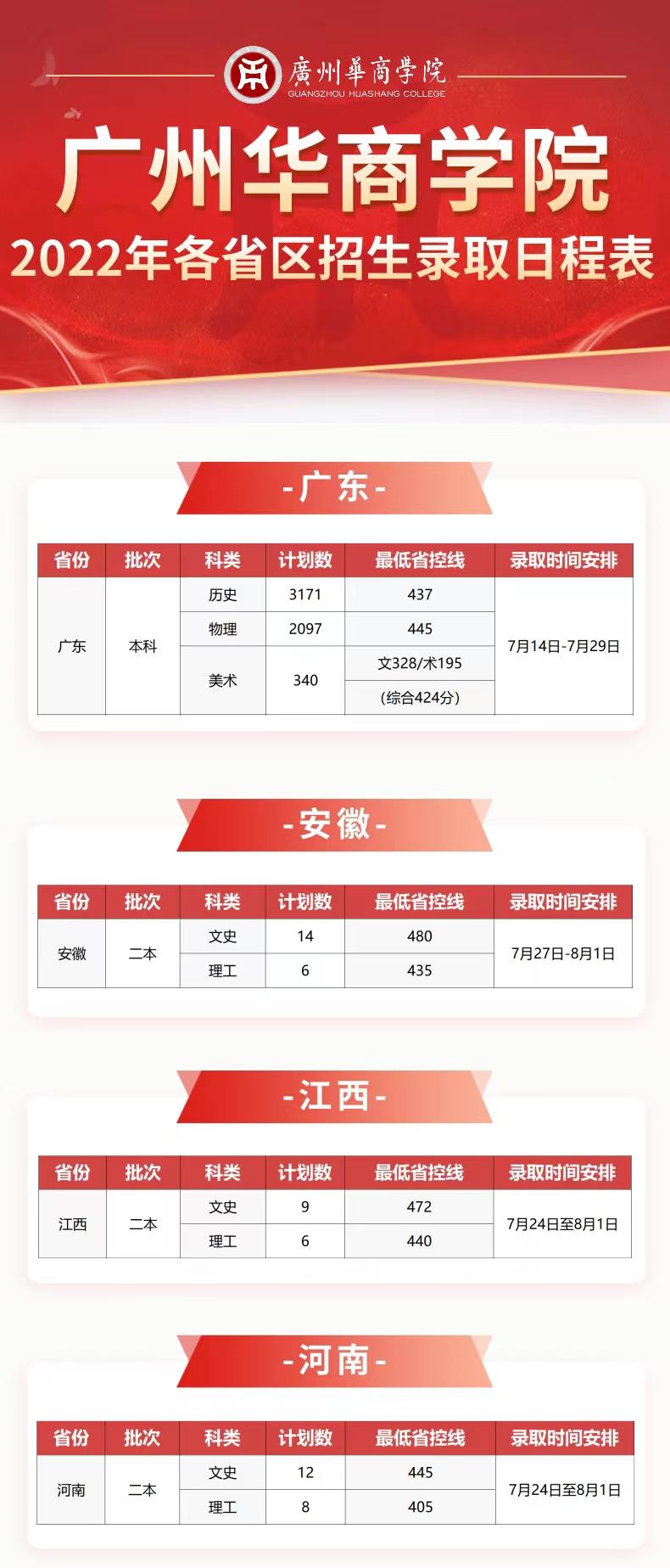 2022年夏季普通高校招生进入录取阶段,广州华商学院首场录取将于7月14日开始。我校在各省份招生录取工作日程安排如下: