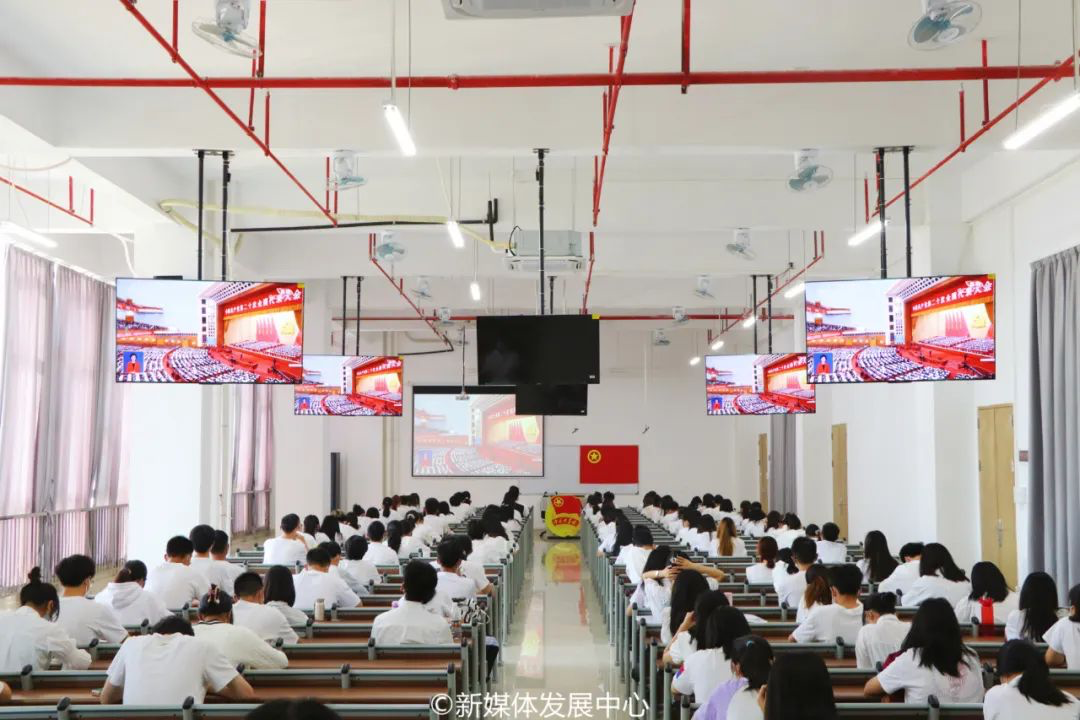 10月16日上午10时,中国共产党第二十次全国代表大会在北京人民大会堂开幕,习近平总书记代表第十九届中央委员会向大会作报告。这举世瞩目的盛会牵动着广大华商学子的心。我校团委组织各二级学院团总支书记、学生会指导老师、团学学生骨干、青马班学员、团支书以及团员青年代表分别在增城校区励志楼C408和四会校区8号楼108、6号楼201教室集中收看中国共产党第二十次全国代表大会开幕会,认真聆听学习习近平总书记代表第十九届中央委员会向党的二十大所作的报告。同时,各二级学院团总支组织学生骨干集中收听收看,广大华商学子积极主动进行线上线下学习。