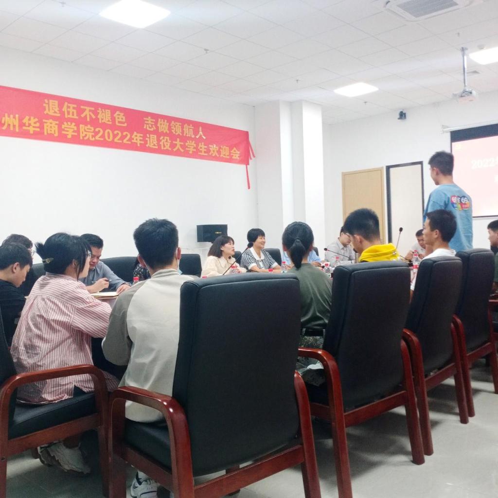 退伍复学学生发言,依次介绍个人情况,分享自己的军旅生活,表达退伍回归校园的感受。他们纷纷表示,华商学院的校园环境优美、学校政策好、学校的老师以及辅导员都很亲切、优秀。