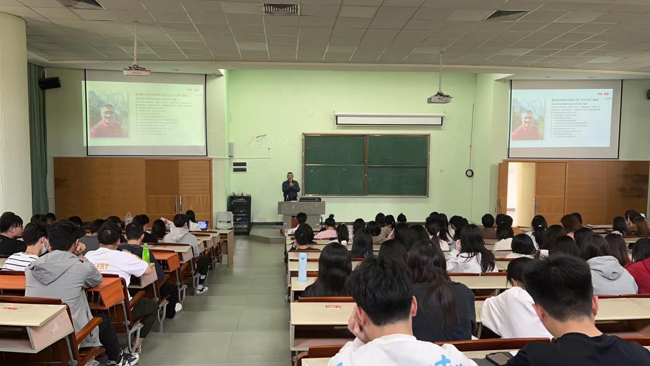 为响应学校产教融合工作的深入开展,加快学院专业课程建设改革的步伐,推进教学过程与生产过程对接,切实提高人才培养质量,2023年3月7日,新道科技股份有限公司教育服务总监魏闯、新道科技股份有限公司产业学院服务总监黄才龙应邀到广州华商学院管理学院为2020级工商管理、市场营销、物流管理专业同学作题为“发展数智科技,共育时代人才”的专题讲座。