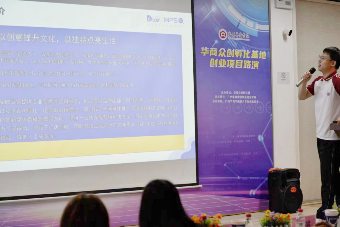 4月4日,2023年华商众创孵化基地项目团队入驻路演在中央图书馆5楼举行。莅临本次路演会的嘉宾有:广东孵客科技孵化集团总裁助理、投资总监路斌先生,华商数字化技术与应用研究院院长彭秀东教授,广州华商学院产教融合办公室唐显锋副主任,广东华商众创孵化器有限公司项目专员罗丽玲女士以及广州华商学院创新创业学院陈欢老师。