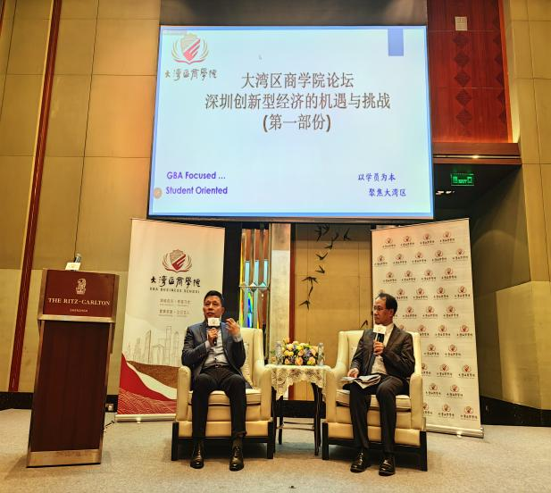 本次大湾区商学院论坛由招商银行首席经济学院丁安华教授和大湾区商学院校长陈志辉教授重点阐述了新形势下深圳的创业发展环境如何面对成本、土地、人才的压力的问题以及探讨私人经济的未来。丁教授和陈教授的发言深入浅出,令人深思,与会校友纷纷表示受益匪浅,并与大湾区商学院校长陈志辉教授合影留念。