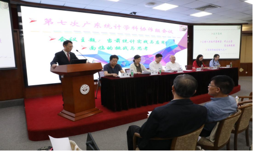 本次会议由广东统计学科协作组创始人之一——中山大学岭南学院夏南新教授牵头发起、主持并致开幕辞。夏教授希望能够通过此次会议,用表格丈量社会经济,用数字来辅助政府决策。我校大数据研究院韩兆洲院长(原暨南大学)也作为广东统计学科协作组创始人之一,发表了讲话,主要谈了广东统计学科协助组会议由来及历史回顾。广东省统计局局长杨新洪、广州市统计局局长陈小华、佛山市统计局局长王慧艳以及深圳市统计局副局长沈宜等应邀出席,分别作了“统会融通”——广州市探索统计数据采集方式创新的路径与思考、新经济下消费统计面临的挑战和如何破局的思考、深圳零工经济统计核算的探索与实践的报告。作为本协作组创始人之一的广东财经大学林洪教授也作了报告“百年未有之大变局下的国民经济核算变革创新”。