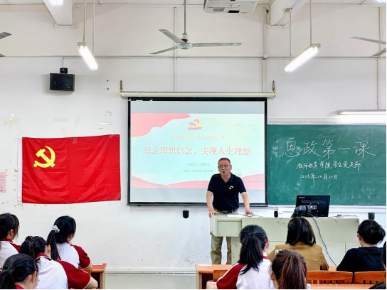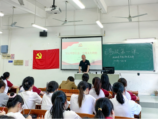 为全面贯彻党的教育方针,深入学习宣传贯彻党的二十大精神,深刻把握新时代伟大成就和中国共产党发展历程。教师教育学院于2023年10月10日下午16:00在广州校区厚德楼C203开展2023学年秋季学期“思政第一课”,旨在帮助学生进一步提高思想觉悟、道德水准、文明素养,培养能够担当民族复兴大任的时代新人。本次授课由教师教育学院副院长谭建生教授、教师教育学院党总支副书记许娜同志主讲。