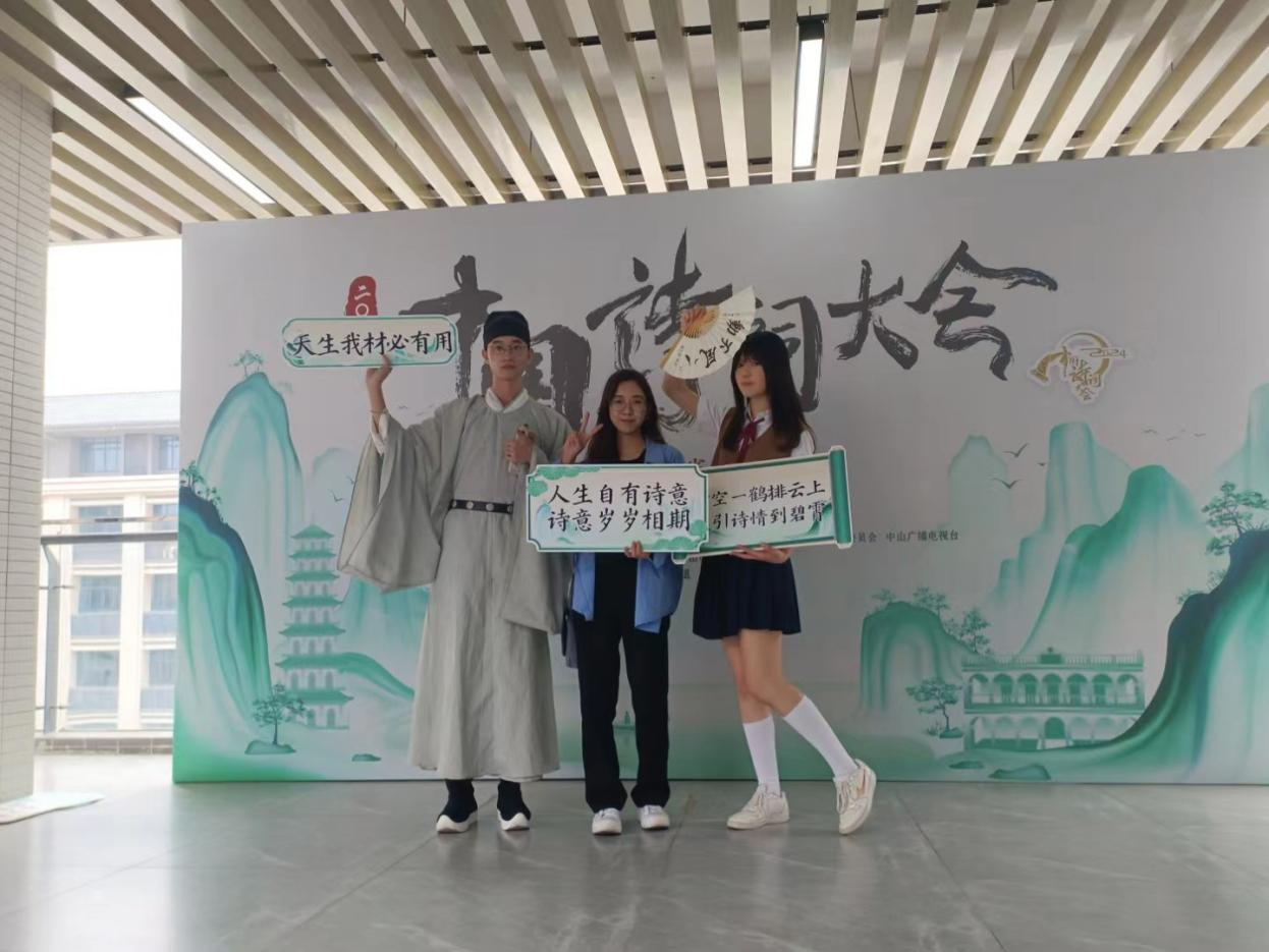 2023年9月接到广东省选拔赛通知后,结合我校实际,由我校文学院负责承办校内“诗绘青春 词颂风华”诗词大赛,通过笔试、飞花令等方式严格筛选参赛选手。最终,2020级汉语言文学郑镇鑫同学和2022级汉语言文学林妙璇同学胜出,成功拿到宝贵的广东省选拔赛入场券。备赛期间,文学院安排杨乐怡和李高扬老师对2名学生进行专业辅导,郑镇鑫同学、林妙璇同学在省级选拔赛中,与来自包括中山大学和汕头大学等在内的318位选手同组竞技,现场发挥稳定,表现不俗,得到了评委肯定,成功入围“2024中国诗词大会”广东赛区200强。