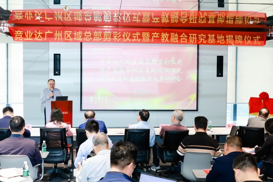广东金融学院原党委副书记、广州新华学院副校长马龙海、广东省高等教学学会常务副会长、研究员汤贞敏、北京竞亚达数码科技股份有限公司副总裁李文波等分别致辞。祝贺广东省计算机学科实验教学改革研讨会的顺利召开,祝贺北京竞亚达数码科技股份有限公司产教融合研究基地顺利揭牌,充分表达了此次研讨会的重要意义。