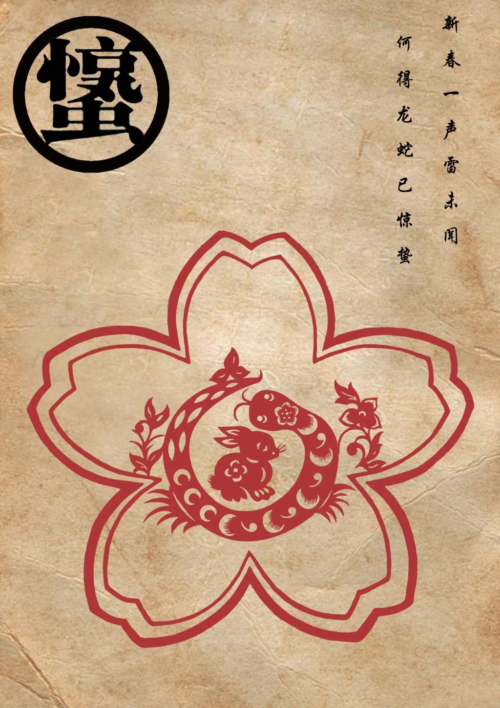 针对画剪四季的主题,朱教授认为,节气的命名多与气候、季节相关,如小暑、大寒、立春、夏至等,或是对农作物状态的描述,如小满、芒种,而惊蛰则是二十四节气中唯一以昆虫习性命名的节气。朱教授说,“虽然在古人认知中,动物是知时气的,一些灵兽还能沟通天地神明,但其实,真正唤醒蛰虫的,不是惊雷乍响,而是天气的温暖。”惊蛰时节,伴随着气温回暖、降水增多,也就意味着全国大部分地区迎来“可耕之候”,惊蛰也因此被农民视作正式开始春耕的日子。
