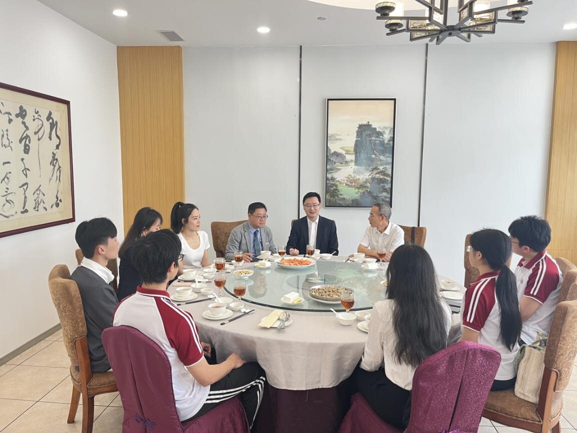 当天中午,Epimelis Capital首席执行官罗思豪先生、中汇集团投融资及投资者关系部总监印国庭先生、投资者关系专员杨碧桦、投融资及投资者关系部行政助理曹畅与广州华商学院金融学院副院长张纯威教授、辅导员张文杰老师,以及来自广州华商学院金融学院金融工程、经济与金融、金融科技专业的五位优秀学生代表进行午餐会。