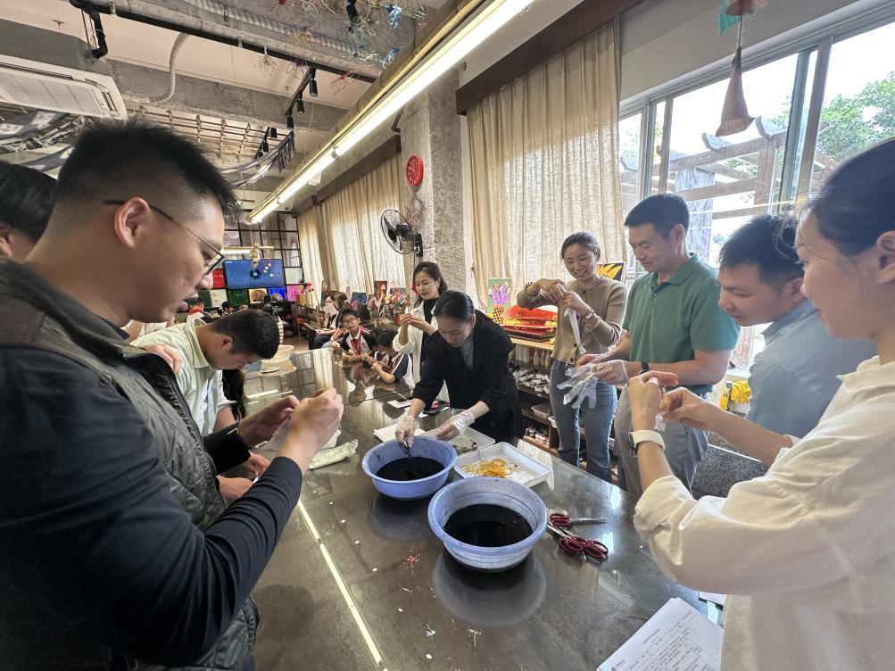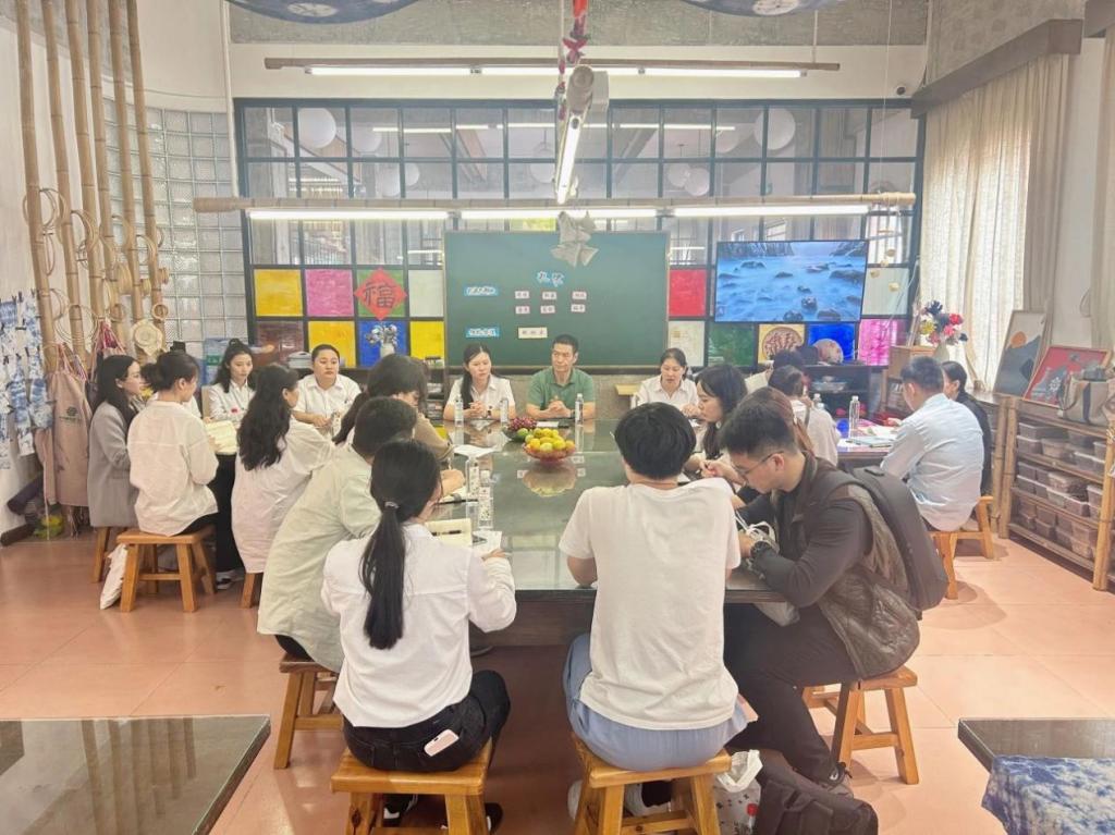 张博副院长带领老师们一起走进华特雅学校综合材料室,沉浸式感受了一节小学美术特色课——手工扎染。此次特色课通过现场教学和互动交流,展示了扎染艺术在小学美术教育中的应用及其独特魅力。学院老师们对这一创新尝试给予了高度评价,并提出了意见和建议。