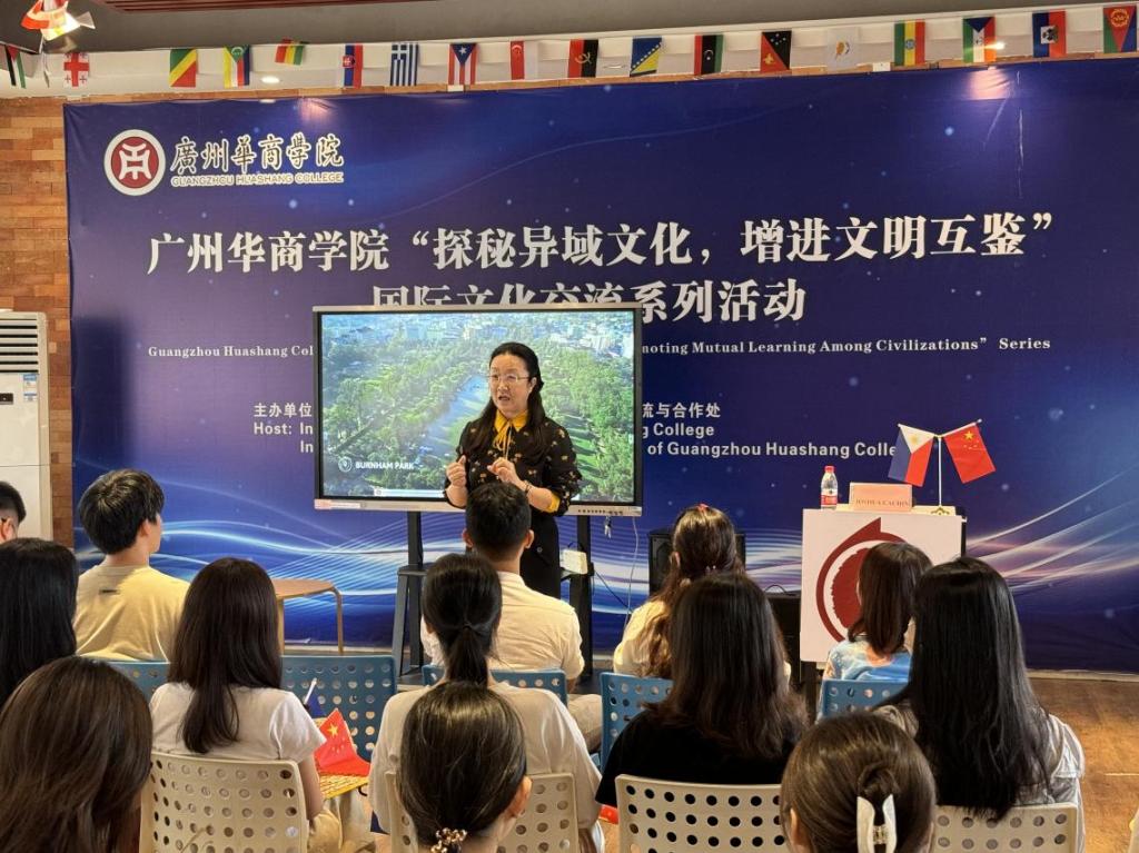 为持续构建华商国际学院的品牌活动,不断丰富校园多元文化氛围,2024年4月22日,广州华商学院国际学院联合国际交流与合作处在启智楼501举办“探秘异域文化,增进文明互鉴”国际文化交流系列活动第七期:菲律宾文化分享会。暨南大学菲律宾研究中心副研究员Joshua Cachin担任本次活动的主讲嘉宾,国际学院院长回雁雁、国际交流与合作处张洁莹老师、巴基斯坦籍教师Dr.Aneela Qadir以及国际学院部分教职工,还有来自会计学院、文学院、传播与传媒学院、健康医学院、数据科学学院、经济贸易学院、外国语学院、管理学院、国际学院的60多名大学生参加了活动。