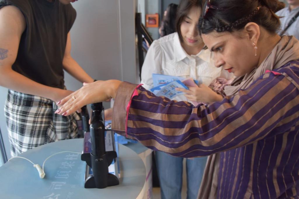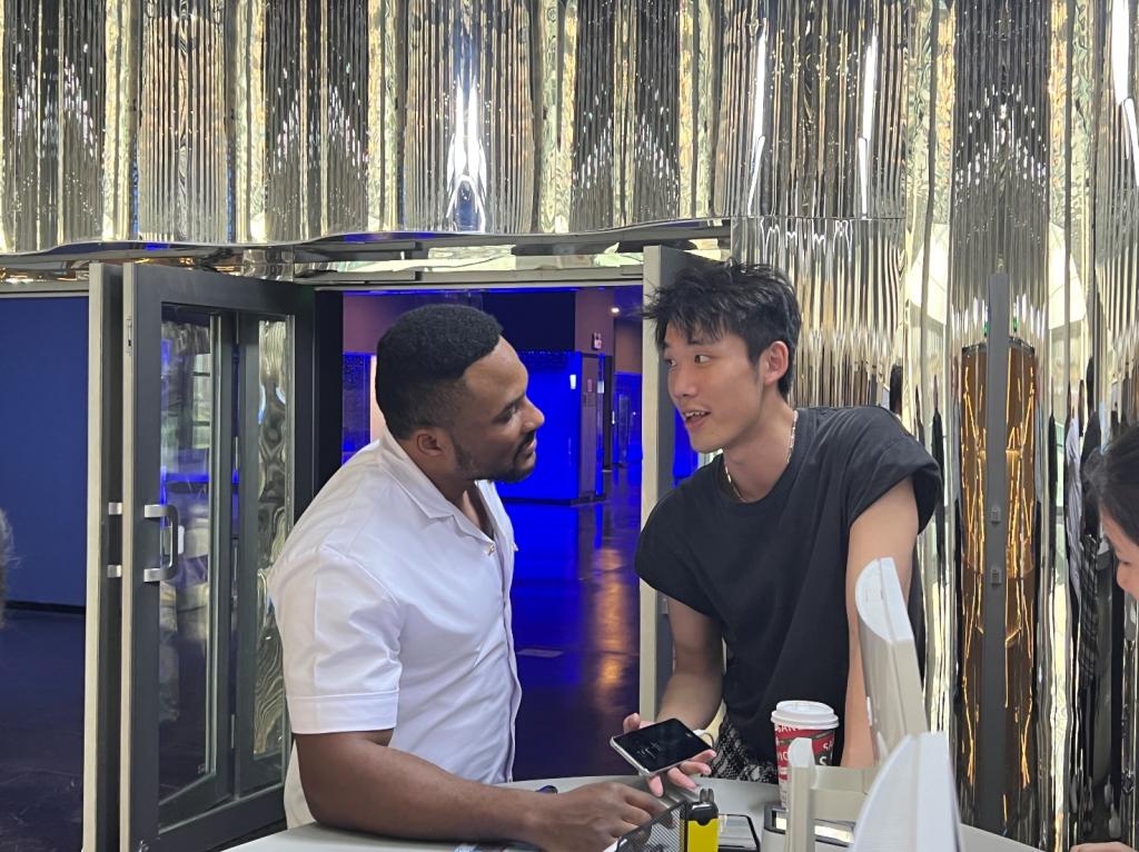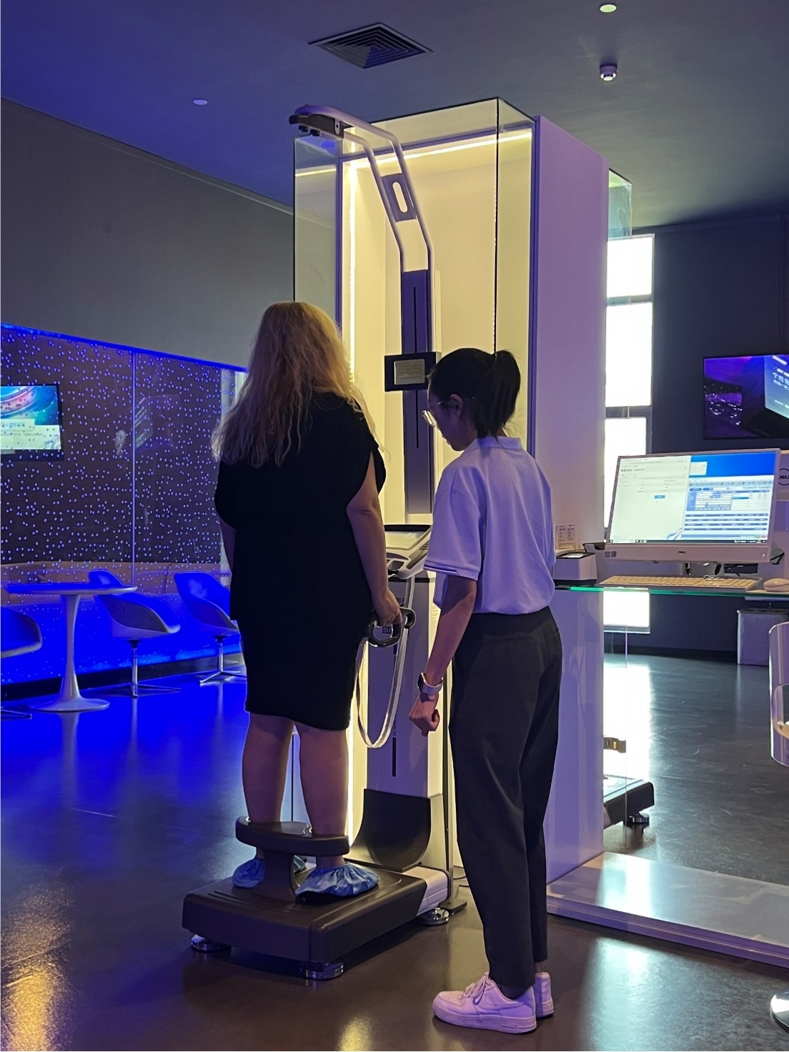 最后,大家来到了营养探索馆,体验沉浸式趣味营养游戏。期间,师生们进行高骨密度、肌肤状况、人体成分、动脉硬化风险、糖基化终产物、视网膜黄斑色素密度等健康测试,每个人都获得了一份自己的健康报告。为了让外籍教师明白汉语健康报告的内容,同学们还耐心、细致地用英语向外籍教师解释了报告中的指标及其含义。