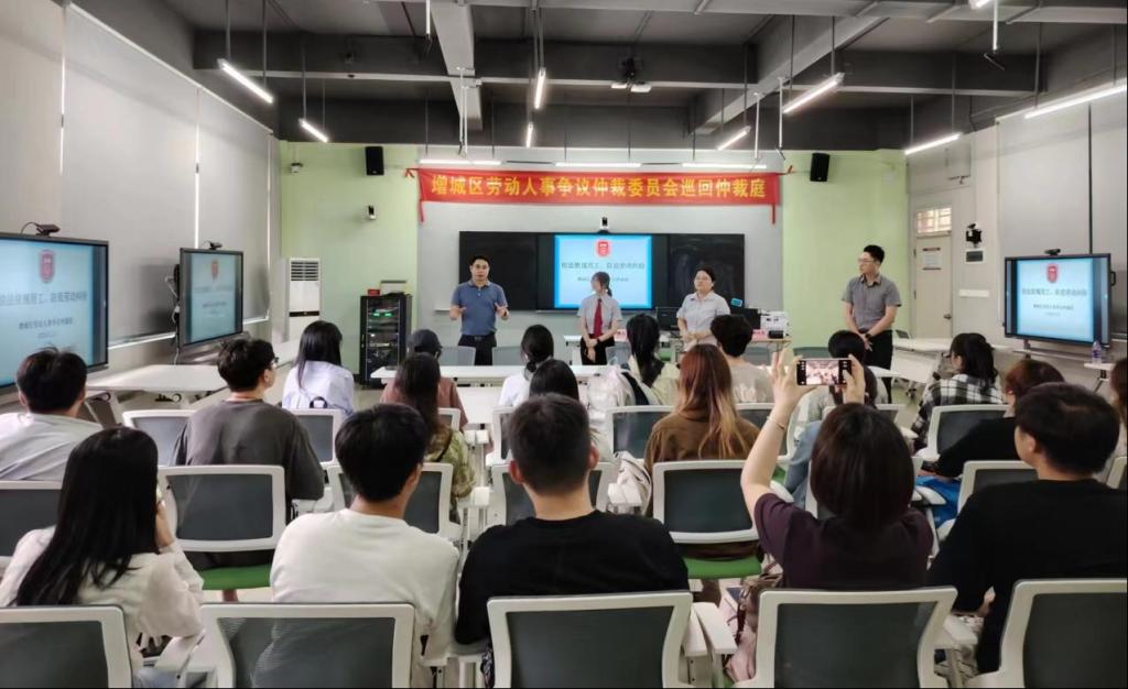 为落实学校领导关于“深化产教融合,构建产学研创全方位、全过程、深融合的高质量产教融合机制”的指示,打造产教融合共同体,支撑政校合作新路径,管理学院、人力资源产业学院与增城区人力资源和社会保障局共同推动建立的“增城区劳动人事争议巡回仲裁庭”于2024年5月23日在广州华商学院正式开庭。这是广东省首次将巡回仲裁庭设立在高校内,标志着政校合作、协同育人迈出了新的一步。