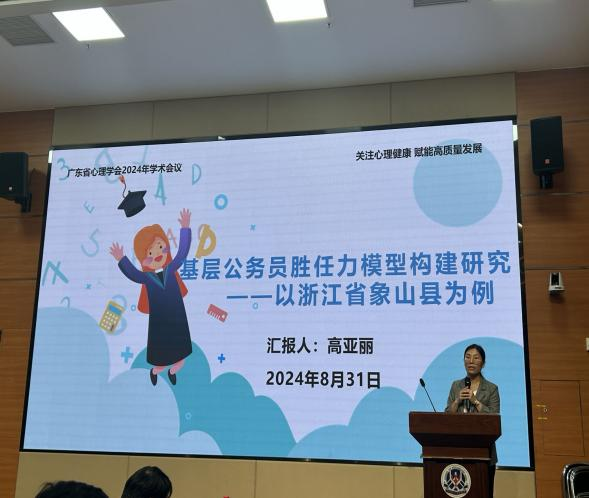 2024年8月31日,广东省心理学会年会在华南师范大学(石牌校区)举行。本次年会以“关注心理健康,赋能高质量发展”为主题,本次年会邀请了国内知名心理学专家作专题报告。广州华商学院刘耀中教授作为特邀嘉宾主持了主会场的专题报告,深入探讨了心理健康对高质量发展的推动作用。此前,广州华商学院管理学院郑丽芬、张秀丽、高亚丽和王丽四位老师参与了由刘耀中教授主持的浙江省委组织部重点课题——“浙江省象山县基层公务员胜任力模型构建研究”,该课题由象山县组织部委托,旨在通过科学研究提升基层公务员的工作效能和服务质量。
