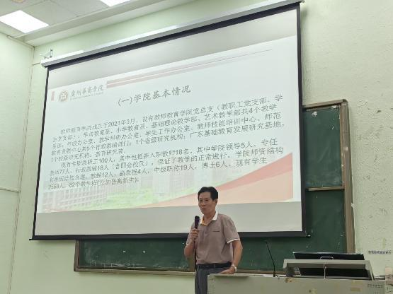 随后,陈上仁副院长讲话。陈副院长表示,非常荣幸能够加入教师教育学院的大家庭,并认为学院的发展壮大离不开王金道院长等学院领导的辛勤付出。陈副院长表示,接下来学院将重点着手于学生师范技能、实习见习等工作,并希望老师们积极参与与配合。