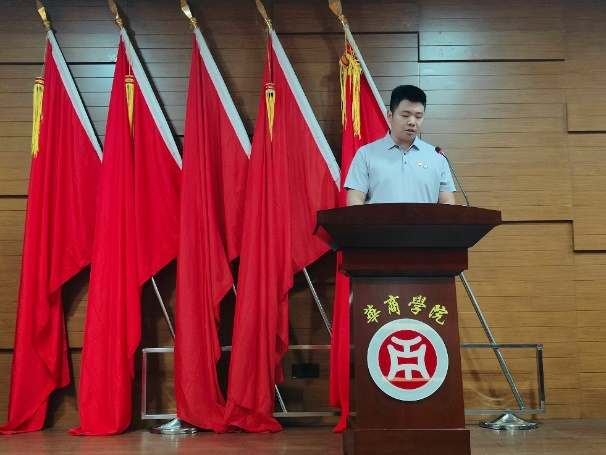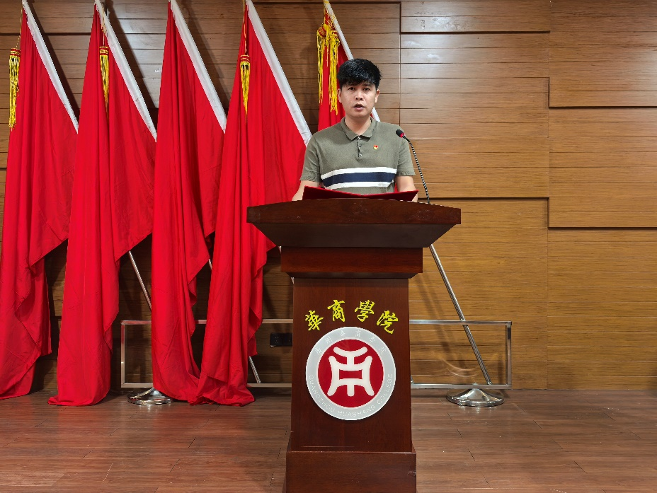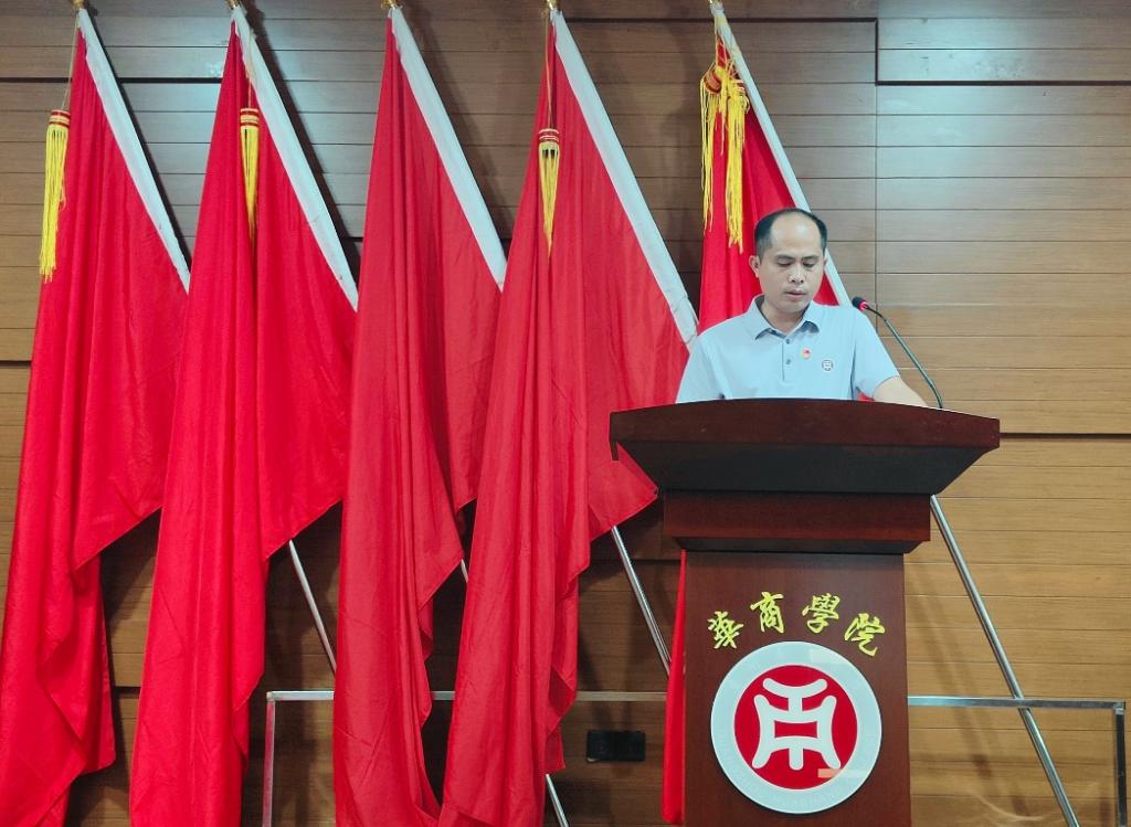 广州华商学院纪委委员、纪检办主任、党办副主任黄秋铭同志代表中共广州华商学院委员会宣读《关于同意召开中国共产党广州华商学院会计学院党员大会的批复》。