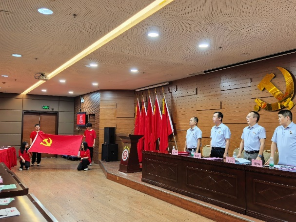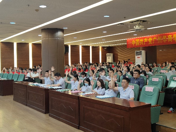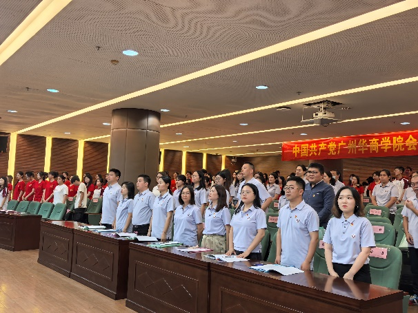 中国共产党广州华商学院会计学院党员大会在国歌声中拉开帷幕。